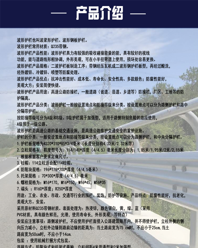 合肥金屬制品有限公司是一家生產(chǎn)波形護欄、波形梁護欄、橋梁護欄、聲屏障、隔音屏障、旋轉(zhuǎn)式護欄、轉(zhuǎn)經(jīng)筒護欄、工字形護欄、U形護欄、京式護欄、道路護欄、道路護欄、市政護欄、W板護欄、波紋板護欄、二波形護欄、三波加牛角護欄、波形梁鋼護欄、公路撞護欄、公路護欄板、景觀護欄、公路標(biāo)志桿、波紋管涵等系列的設(shè)計、生產(chǎn)及銷售型企業(yè)。公司地處合肥市瑤海區(qū)龍崗經(jīng)濟開發(fā)區(qū)。公司擁有公路護欄板生產(chǎn)設(shè)備,生產(chǎn)品質(zhì)合標(biāo)準(zhǔn),采用標(biāo)準(zhǔn)和計算機CAD輔助設(shè)計繪圖系統(tǒng)進行產(chǎn)品設(shè)計,制造流程采用全自動標(biāo)準(zhǔn)化的生產(chǎn)方式,精度高,速度快。完善的生產(chǎn)設(shè)備,精良的生產(chǎn)以及嚴(yán)密的測試系統(tǒng)。