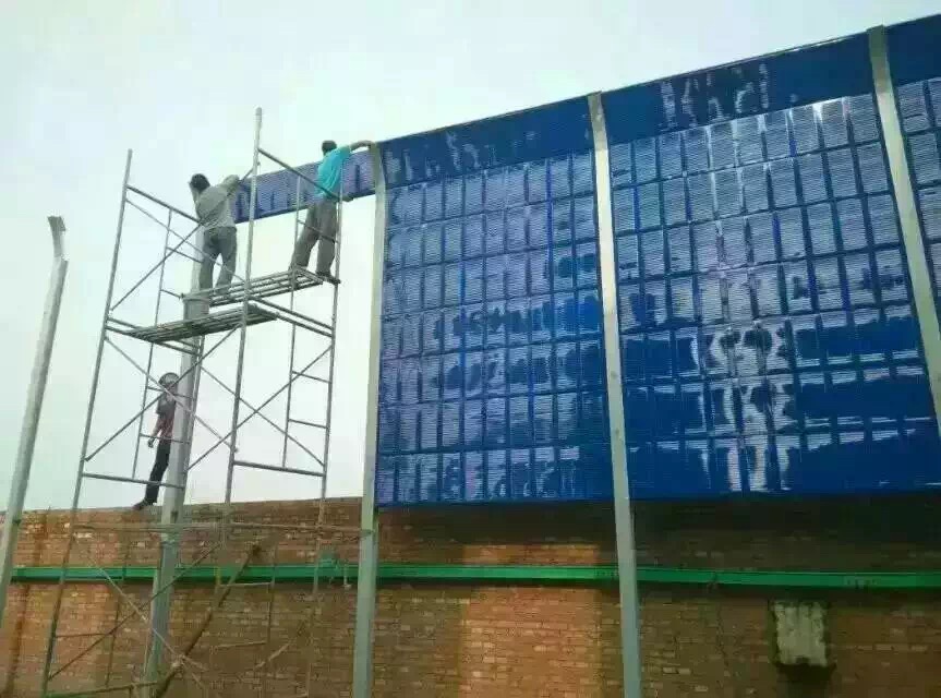 金屬聲屏障面板采用鍍鋅鋼板,穿孔率以上。聲屏障的背板和龍骨也采用鍍鋅鋼板,外表PE噴涂腐處理。選擇以上金屬聲屏障材料,主要考慮到小區聲屏障的整體度、使用壽命、吸聲性能的穩定性,以及美觀等因素。